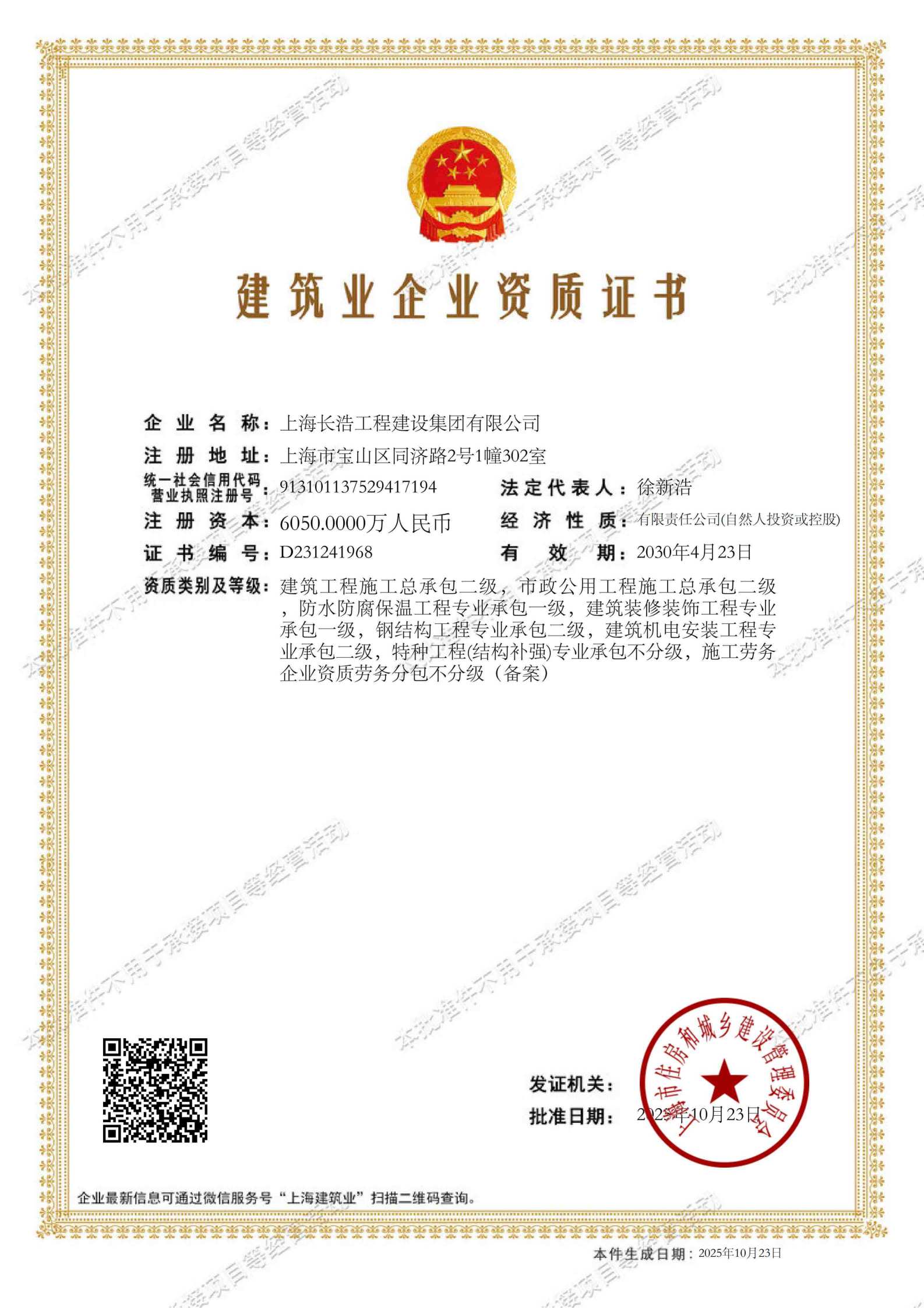 长浩集团建筑资质证书