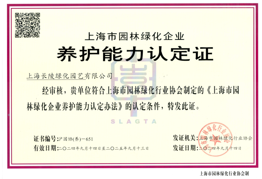 长陵园林绿化养护能力认定