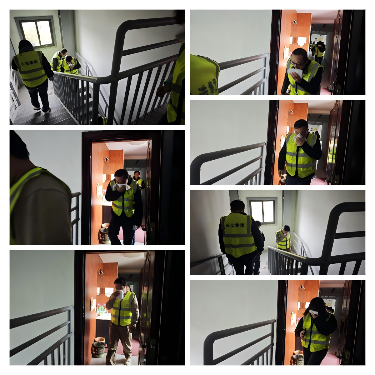 演练现场,参与人员统一穿戴公司安全背心,每人领取专用毛巾,做好火场逃生准备。随着演练指令发出,大家严格按照火场逃生规范,用毛巾捂住口鼻、弯腰低姿,有序通过消防楼梯快速撤离至公司大院内,整个撤离过程紧张有序、规范高效,充分展现了良好的应急反应能力。