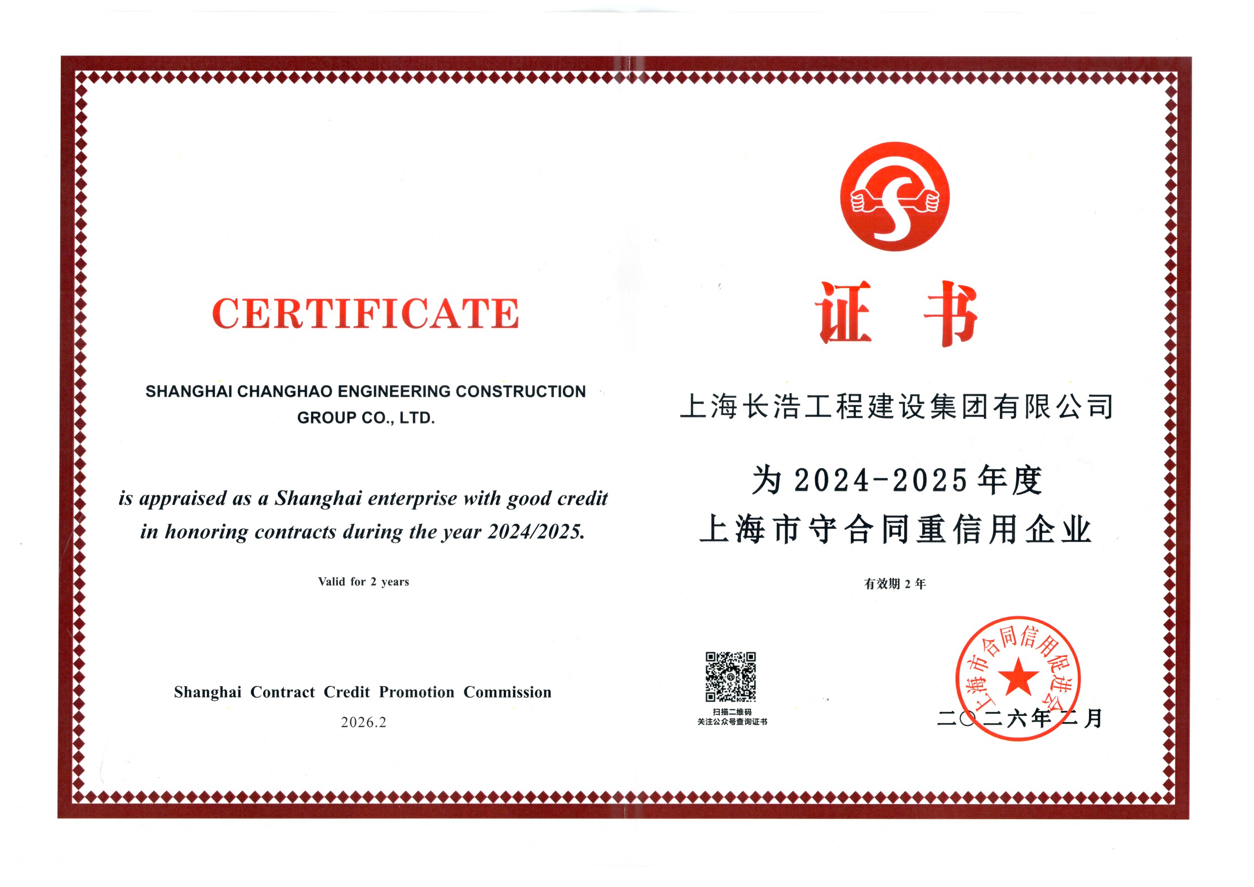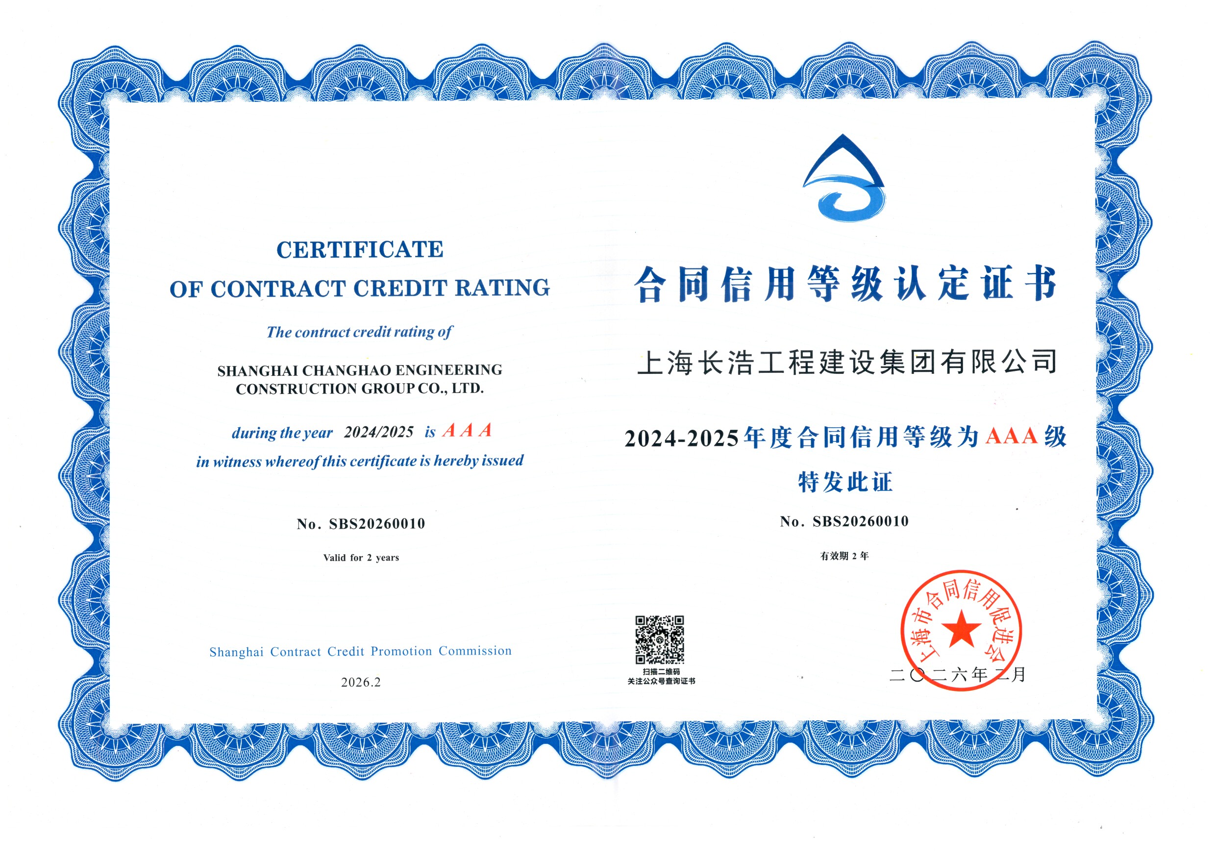 自2016年起,长浩集团连续十年参与上海市合同信用等级评审,在每两年一届的严苛考核中,已连续五届顺利通过评审,此次斩获2024-2025年度认定,用实打实的成绩筑牢诚信品牌底色,彰显企业责任与担当。