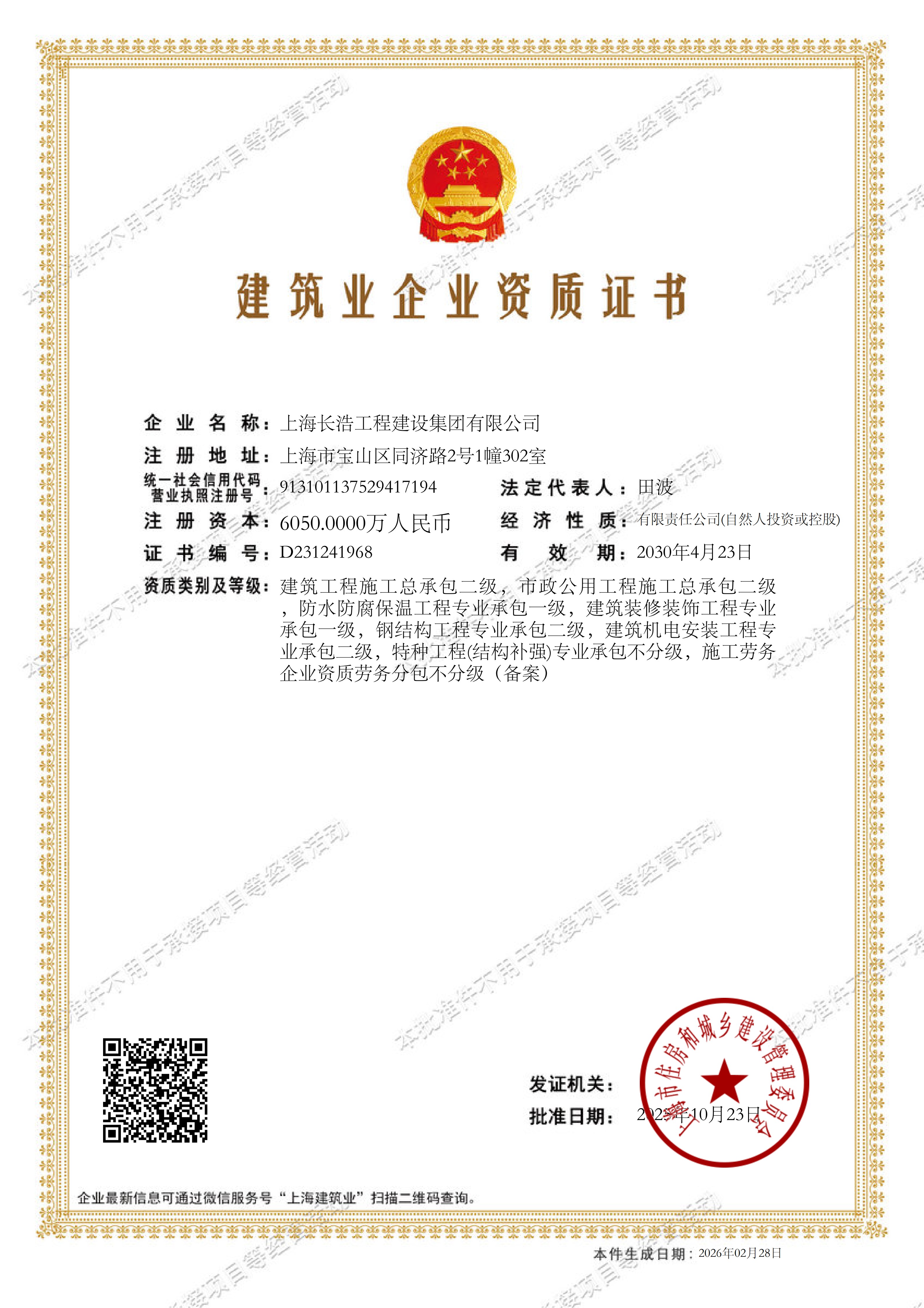 长浩集团建筑资质证书