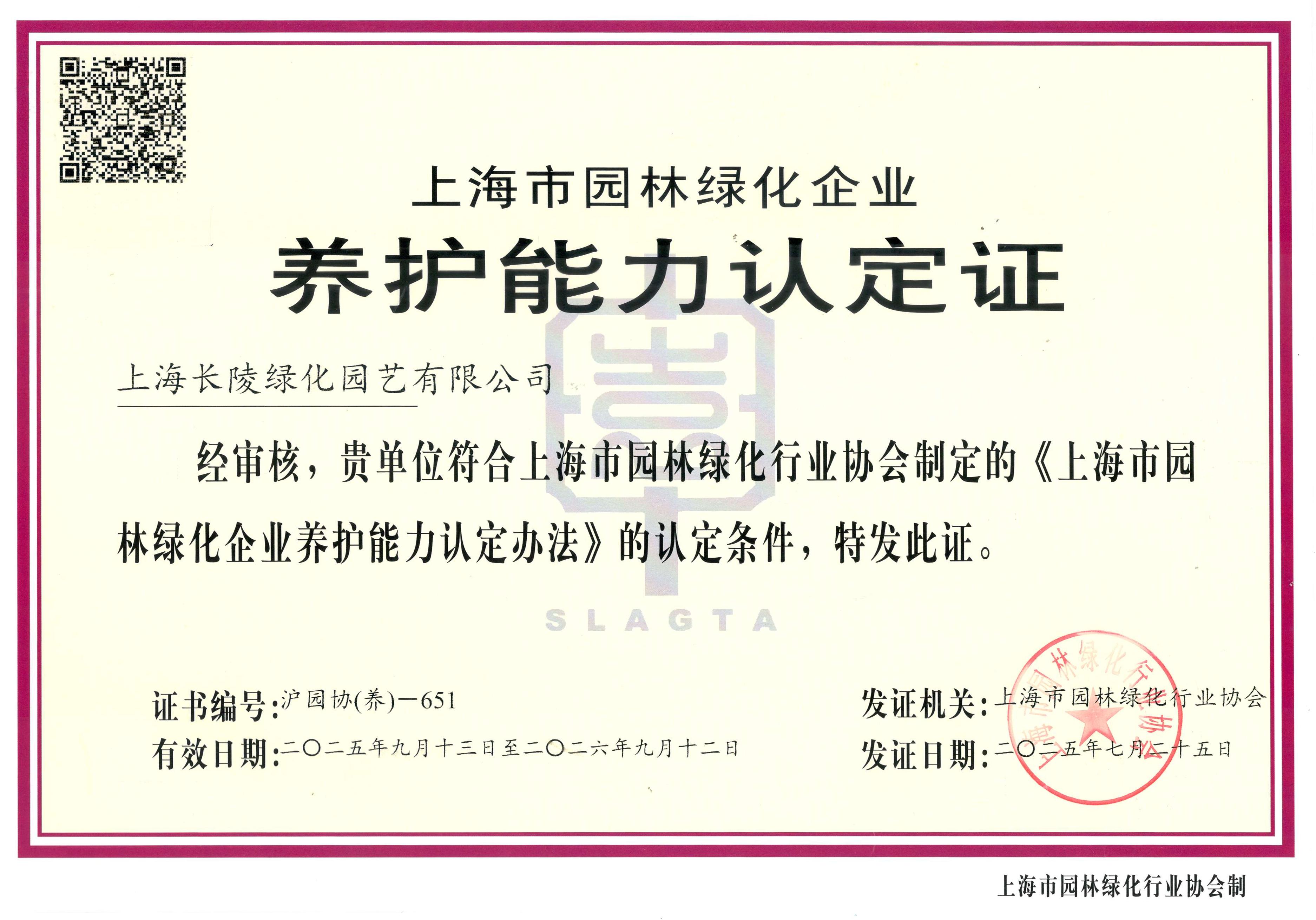 长陵园林绿化养护能力认定